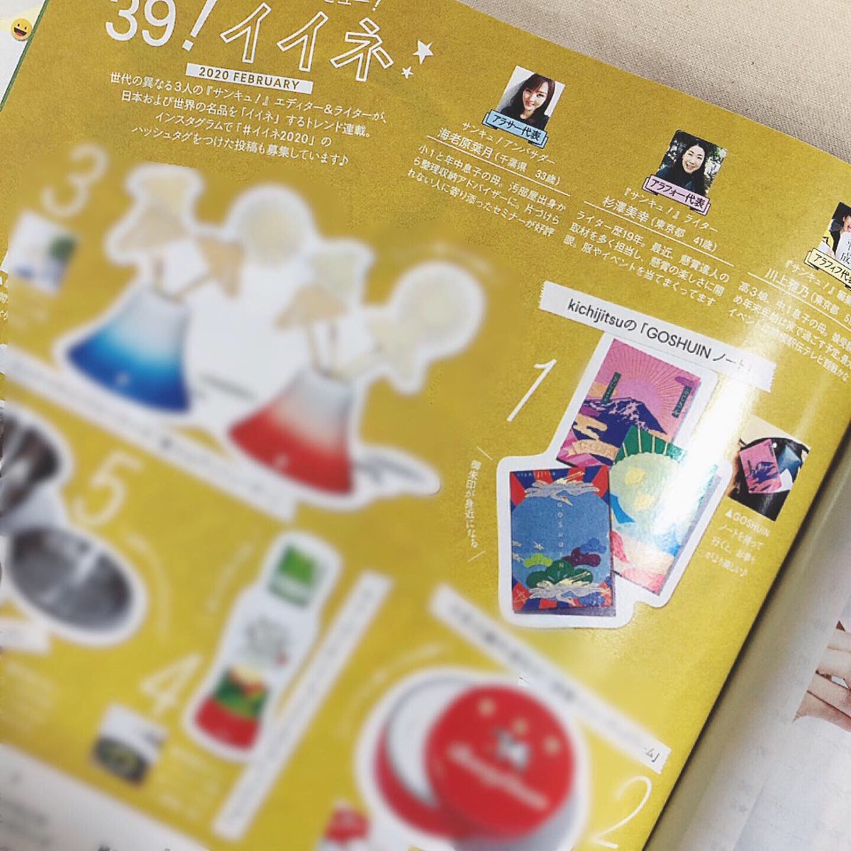 本日発売の『サンキュ!』2月号のトレンド連載ページ「39!イイネ」にkichijitsuのGOSHUINノート(御朱印帳)をご紹介いただきました。 新年に向けてぴったりの特集も満載!是非ご覧ください。 https://39mag.benesse.ne.jp/library/ pic.twitter.com/vIaRINxvMI