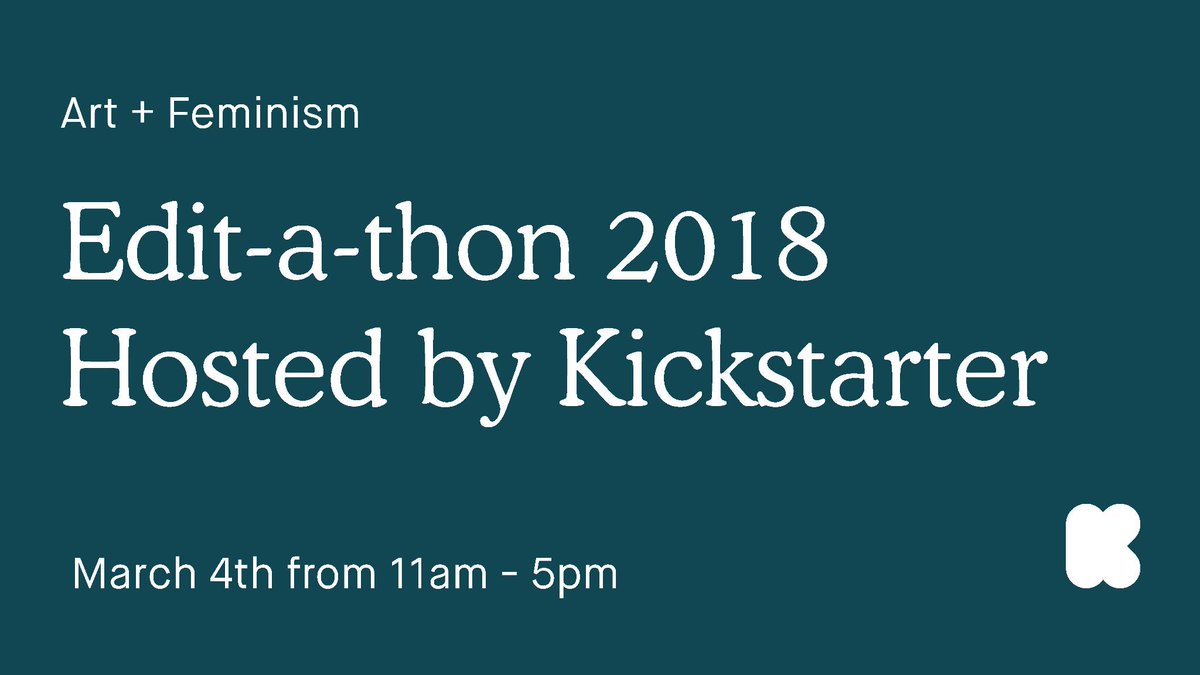 Help improve coverage of women, feminism, and the arts on @Wikipedia. On March 4, join us at Kickstarter HQ in Brooklyn for our second Art + Feminism Wikipedia Edit-a-thon. RSVP here: http://kck.st/2GHopVt pic.twitter.com/UsqTeQmp0j