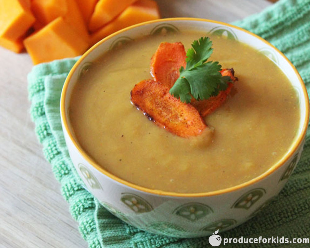 Simple, nutritious, and delicious? Savor the season with this warm and comforting soup, Slow Cooker Butternut Squash Soup. The “chips” are produce-packed too, made from carrots!