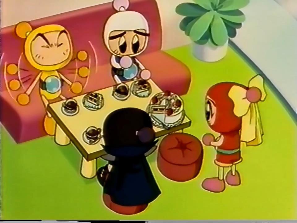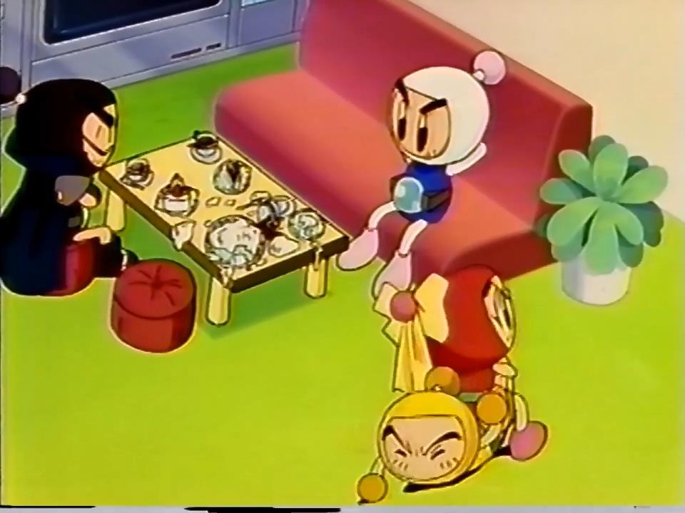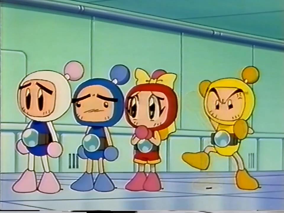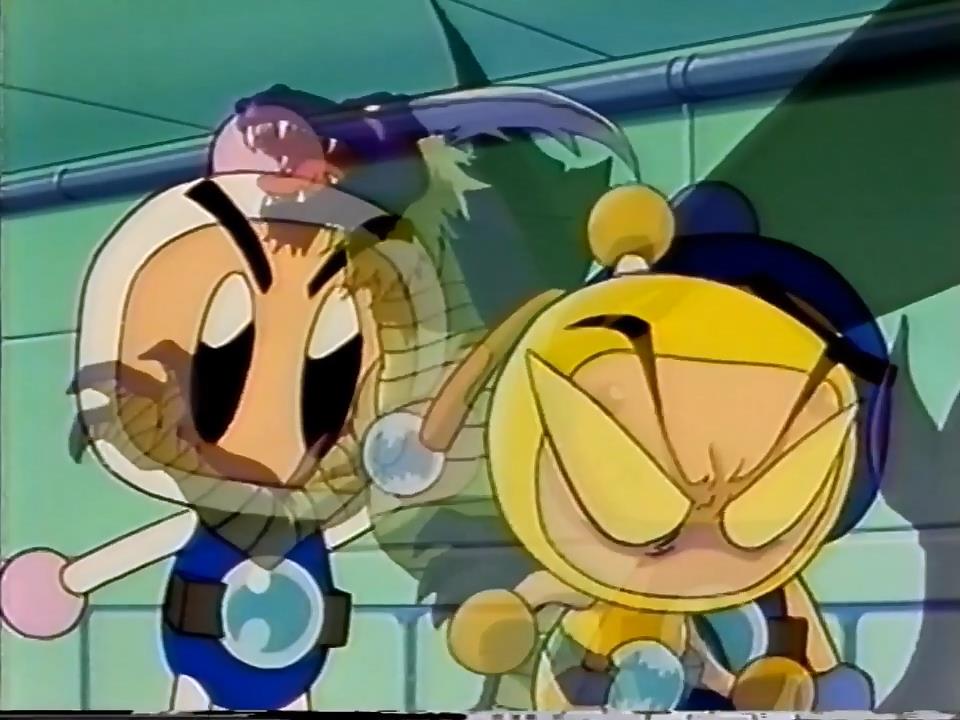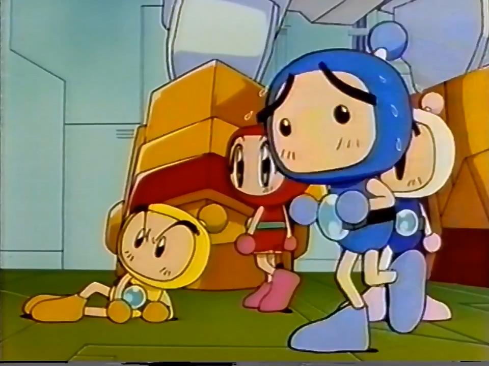 Aka: That's right! We can just shoot your brother up with love and justice! Ku: *Shooting* and *love and justice* in the same sentence.... Shi: Welcome to the land of Bomberman anime.