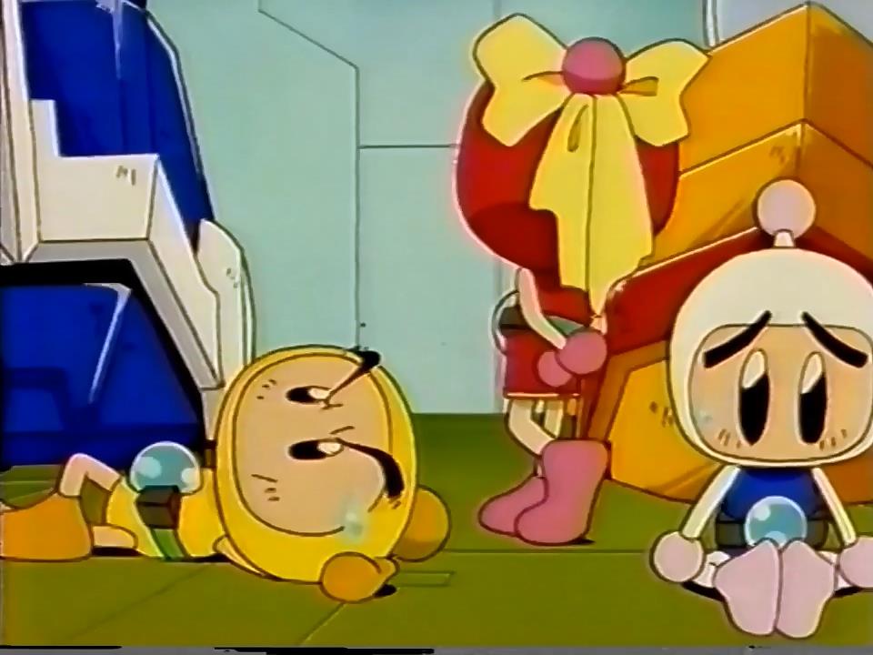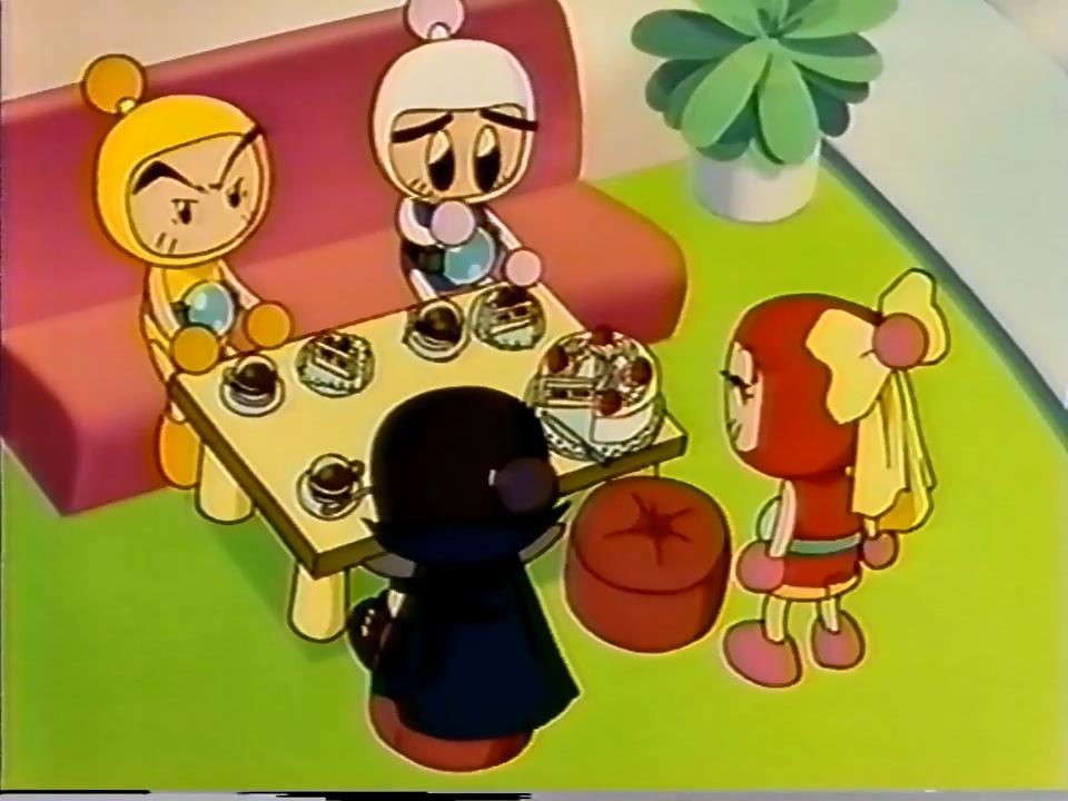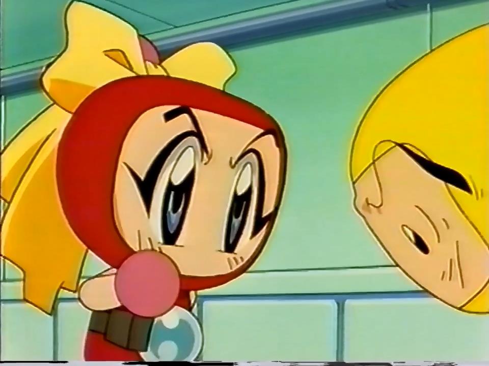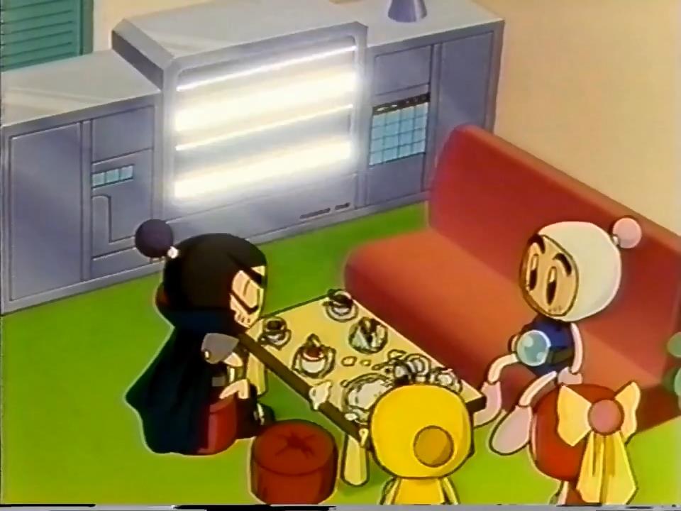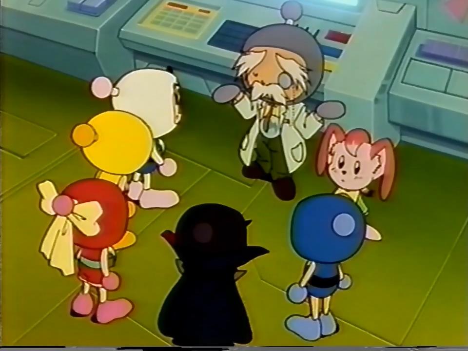 Aka: That's right! We can just shoot your brother up with love and justice! Ku: *Shooting* and *love and justice* in the same sentence.... Shi: Welcome to the land of Bomberman anime.