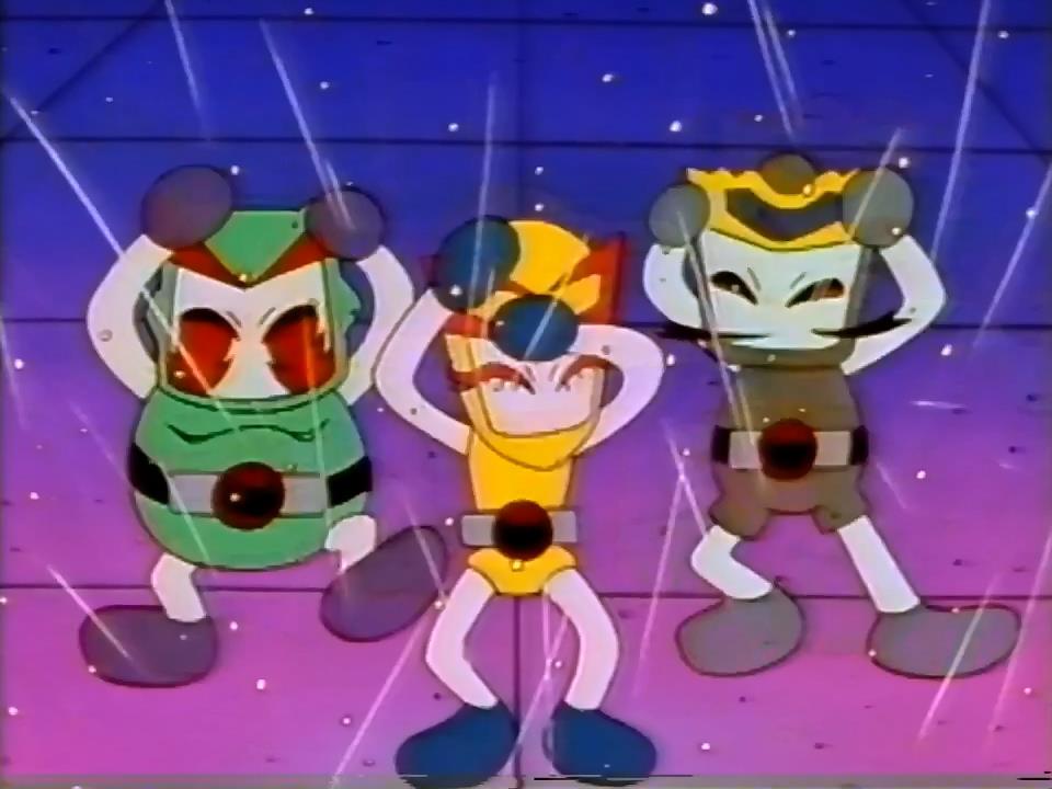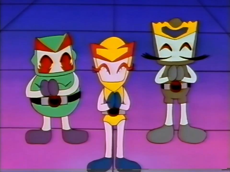 Kiiro: C'mon guys, you should be out of bed all ready! Y'know without saturday morning cartoons you'll grow up to be a warped individual. Shiro: For one thing, this anime aired Sunday mornings, and what standards of child-raising are you talking about?