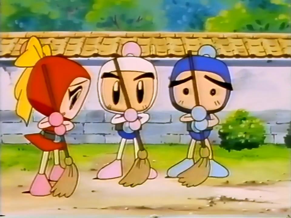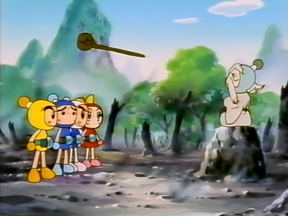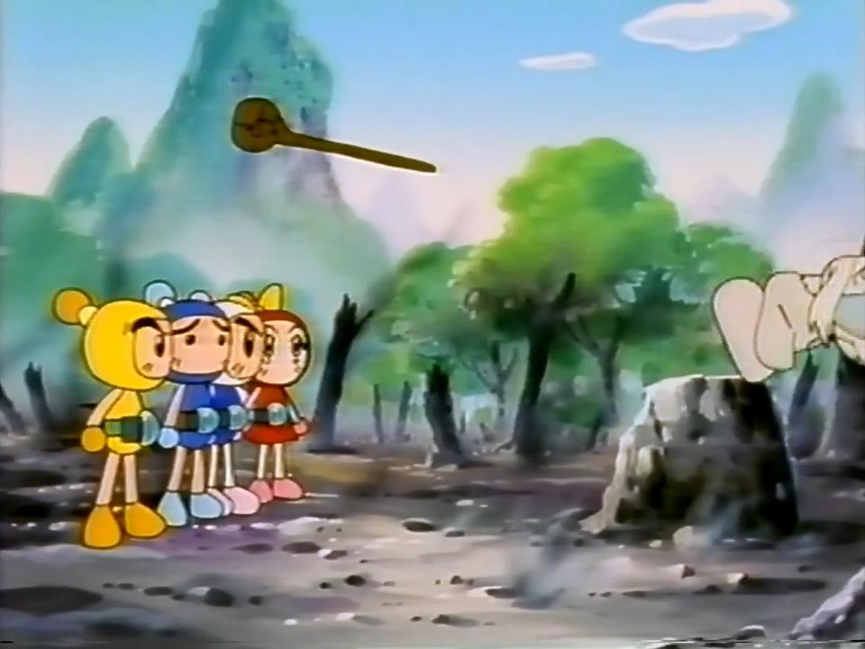 It is a shame since the forest looks really serene. Oh well, it's their mistake for being in a bomberman anime. Bombs away!