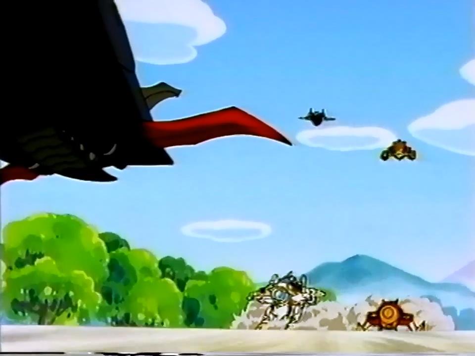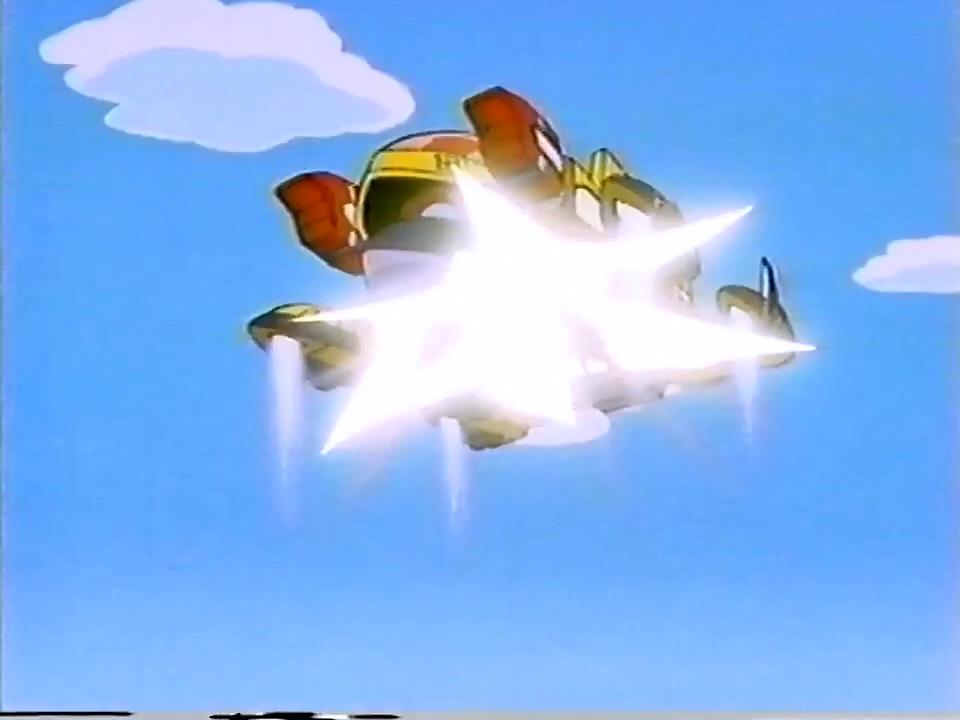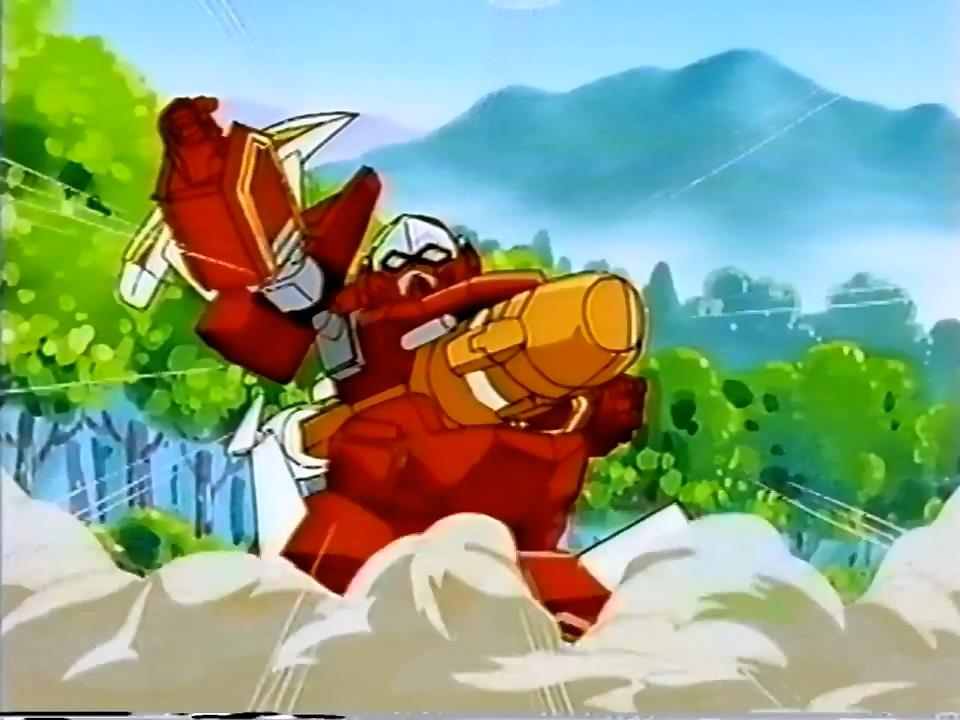 Another change of formula, Akamant just fires at the cops rather than transforming, and shoots Kiiro out of the air. (Guess they learned what works better, huh.)