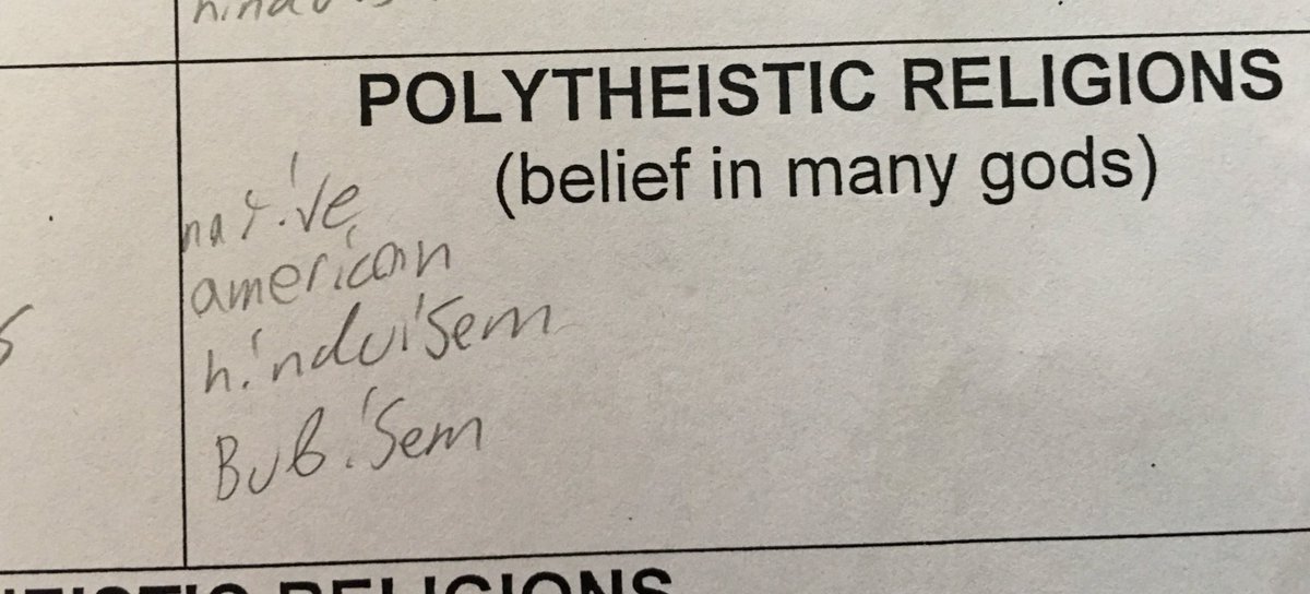 Answers to 6th grade world religion unit (we haven’t introduced him to