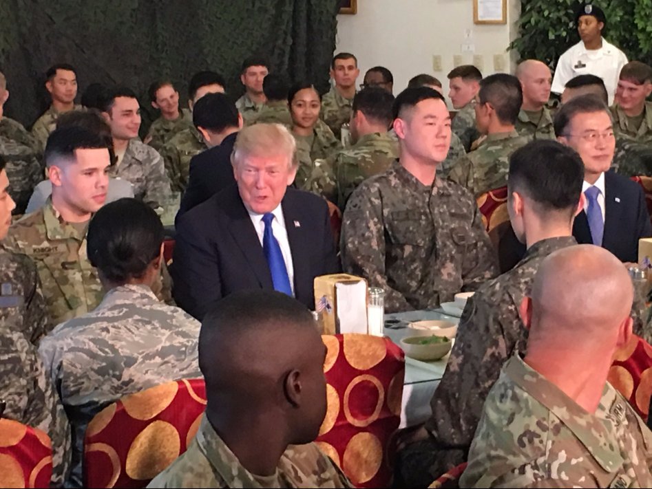 Please tell us about the soldier sitting bet Moon & Trump. He looks nervous ^^pic.twitter.com/oUckhvRFIL