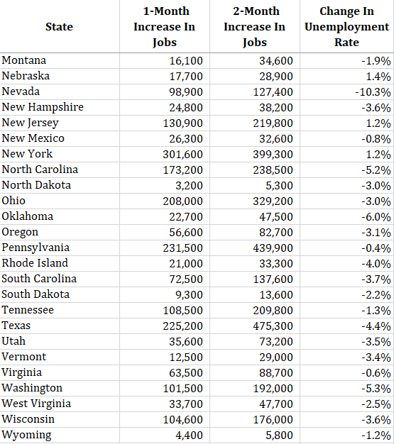 Jobs added in all 50 states in June