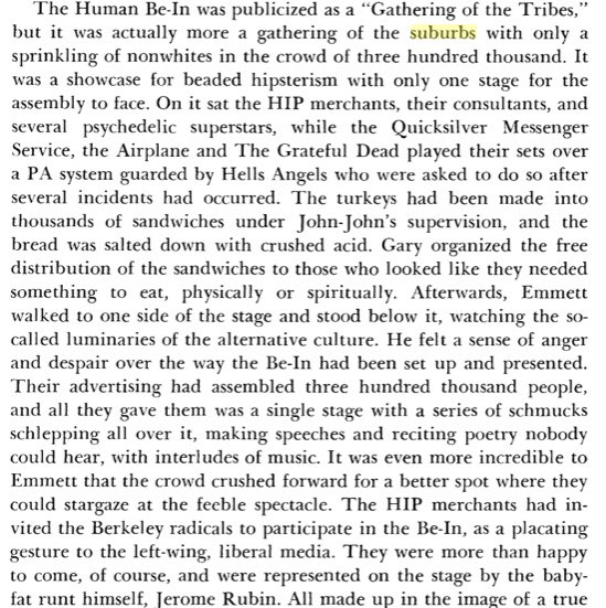 One of the founders of SF’s Diggers complaining about 1967’s Human Be-In in 1972 https://books.google.com/books/about/Ringolevio.html?id=ZBm1AAAAIAAJ …pic.twitter.com/a6gcrkNbVD