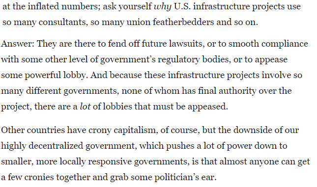 On the upside decentralization helps protest the interests of many citizens when the central government is incompetent and corrupt. Like California and Washington D.C. right now.