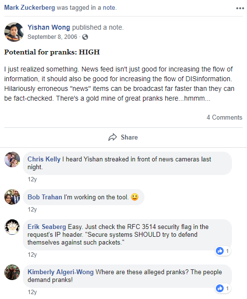 This post from Facebook's Director of Engineering in 2006 (2 days after they launched the Newsfeed) did not age well.pic.twitter.com/A6JfhC509D