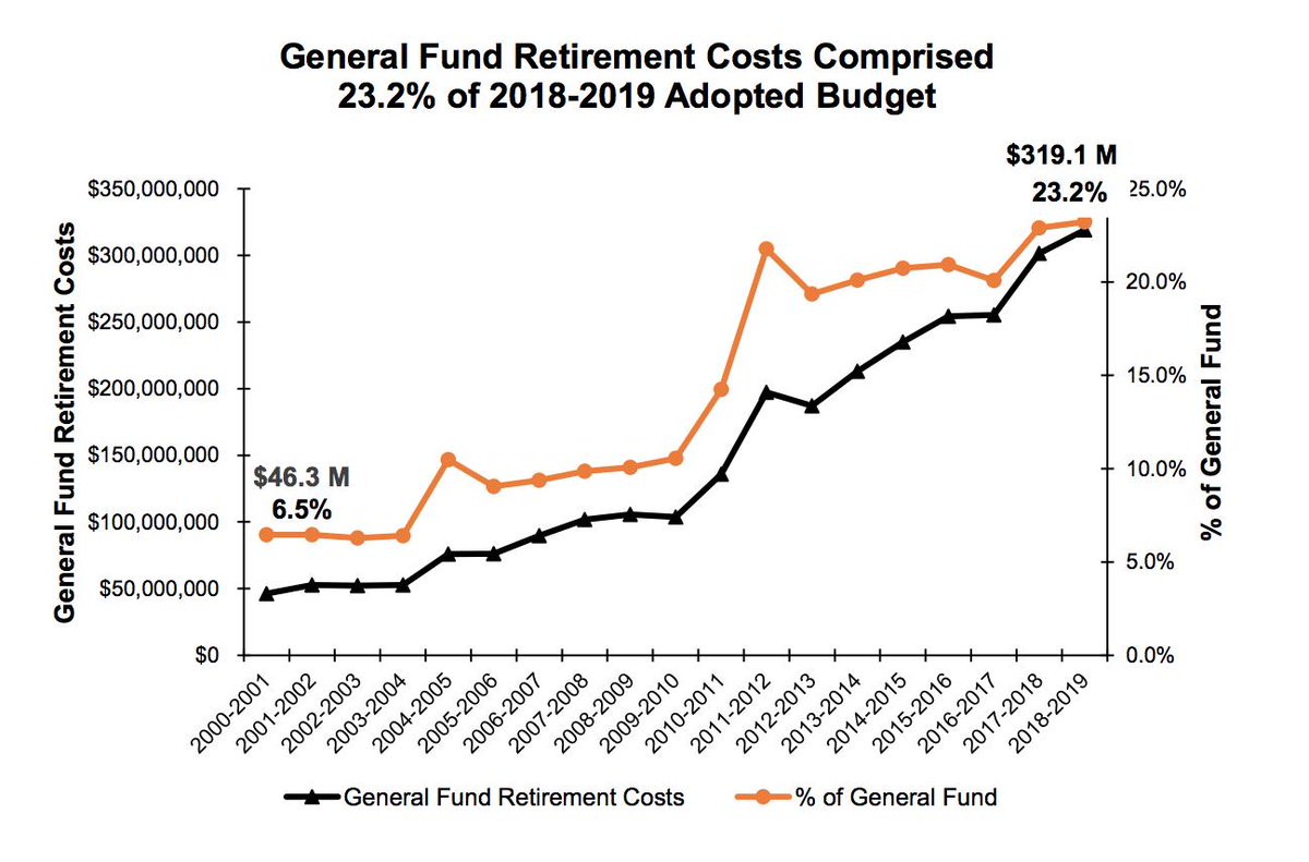 And because it is spending a quarter of its general fund every year on retirement obligations for people who no longer work there that weren't adequately covered by pension investment returns. http://www.sanjoseca.gov/DocumentCenter/View/82758 …pic.twitter.com/FwtiRySpw3
