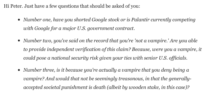 “Is Palantir currently competing with Google for a major U.S. contract?” Great question, @danprimack!