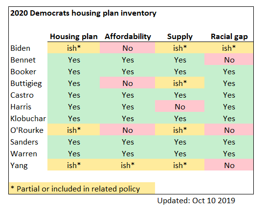 Personally, when looked at from ability to solve the crisis, I think it goes: 1) Sanders (people can disagree on the rent control impact, but I think any final legislative product would be fine) 2) Warren 3) Castro 4) Everybody else 5) Harris (whose plan sucks) & Biden (no plan)