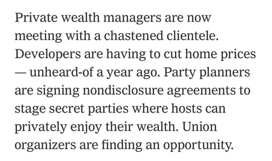 This is a weird array of facts in the NYT’s “SF’s IPO Fizzle” story. In particular, I’m not sure that NDAs are new nor that private wealth enjoyment parties are a thing. Also fuck you guys, I didn’t want an invite to your wealth enjoyment party anyway.pic.twitter.com/mRsjlp3wnM