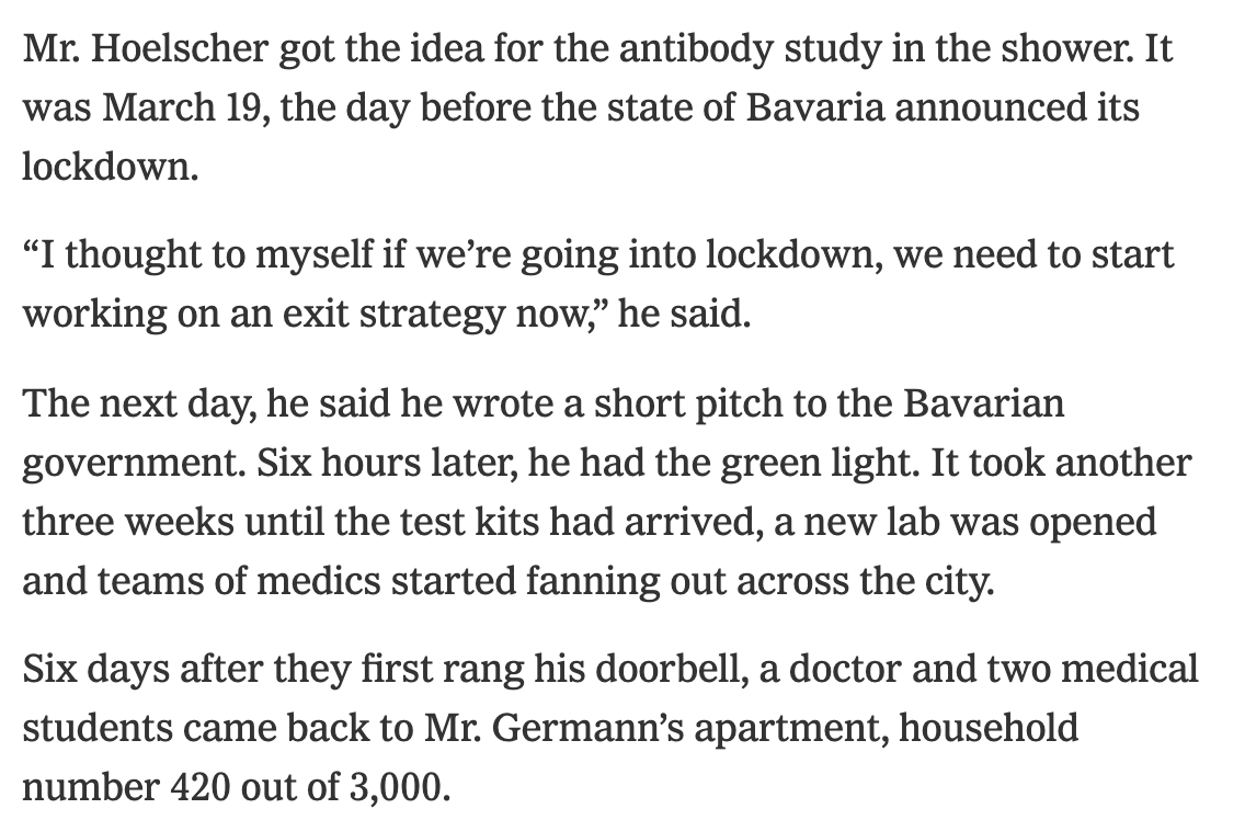 Impressive speed of action https://www.nytimes.com/2020/04/18/world/europe/with-broad-random-tests-for-antibodies-germany-seeks-path-out-of-lockdown.html …pic.twitter.com/4G5S0EoXXM