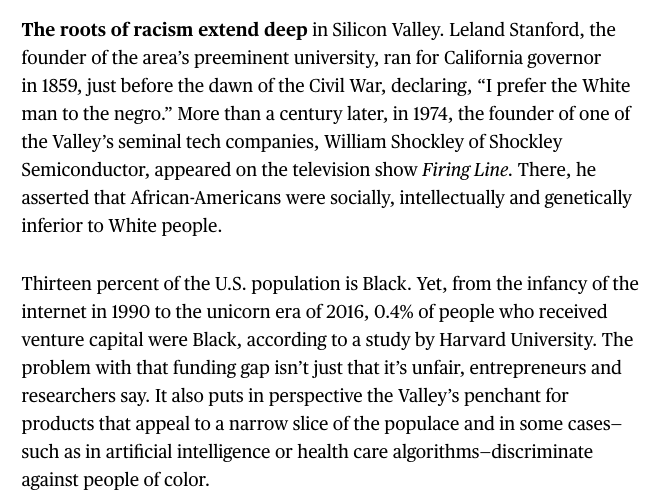 Vivid examples of the kind of racism—both "routine and insidious"—that black entrepreneurs face in Silicon Valley.https://www.bloomberg.com/news/articles/2020-06-16/black-lives-matter-highlights-adversity-facing-black-tech-ceos?sref=YqYS2qcg …