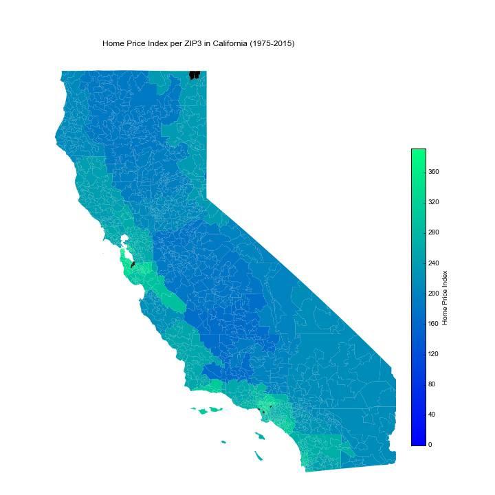 Housing costs in SF and LA have more that tripled from 1975 to 2015. Mapped the FHFA house price index for zip 3s.pic.twitter.com/AGh7vYTizI