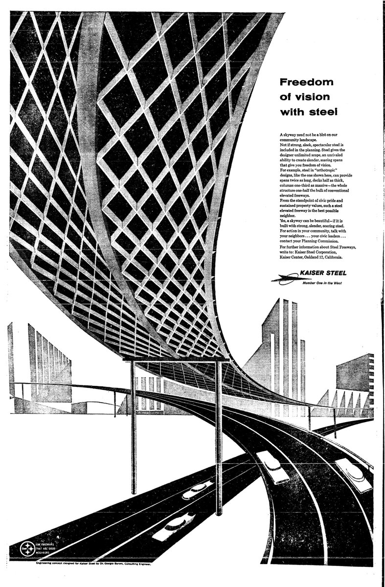 Jan 1962 Kaiser Steel ad "for freeways that are good neighbors." "Need not be a blot on our community landscape" pic.twitter.com/j93VjfaGf4