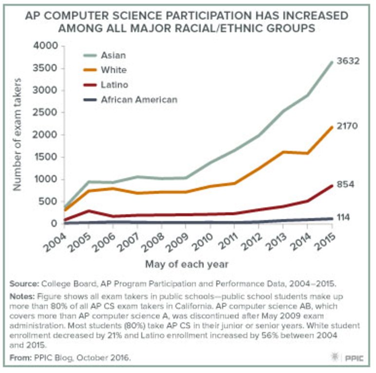 Still lots of disparities in who is taking the AP computer science exam in California: http://www.ppic.org/main/blog_detail.asp?i=2155 …pic.twitter.com/0TTRAOPO0j