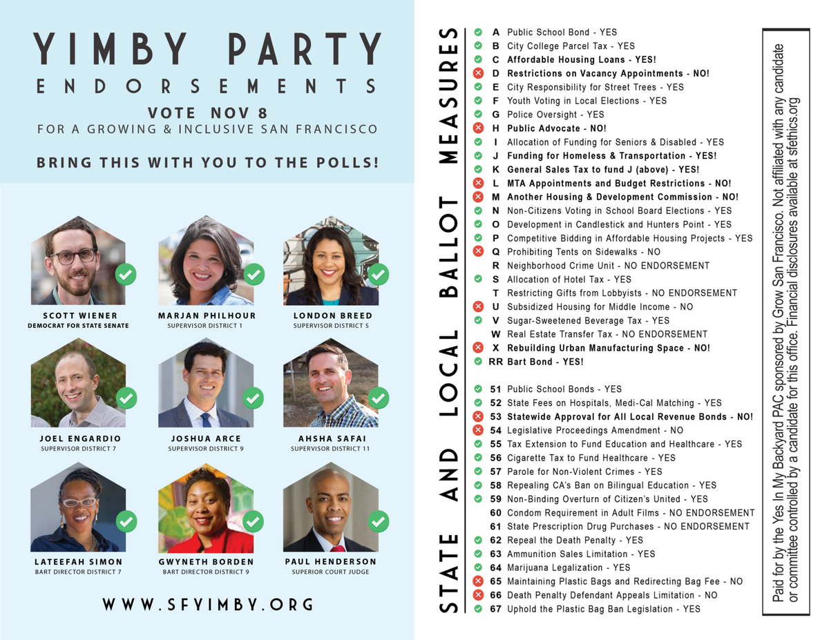 The @SFyimby slate. One difference between me and them: No on P.pic.twitter.com/l10ljX0wJX