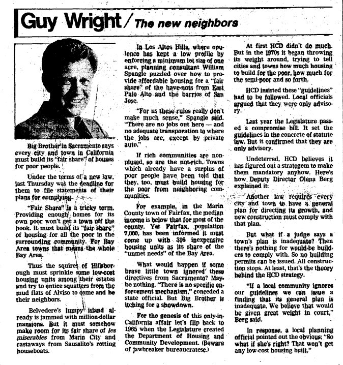 Just ran across this about how Belvedere, Los Altos Hills, Hillsborough, etc., felt about affordable housing allocations in 1981 (Oct 4) pic.twitter.com/hcXtVJe6Kg