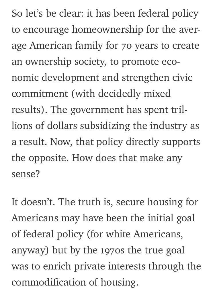 Couldn't have said it better @PeteHarrisonNYC. https://medium.com/@petehomeBody/pe-firms-renting-homes-shows-how-fraudulent-federal-housing-policy-is-1d69f8117b94 …pic.twitter.com/l2LVHtIz60