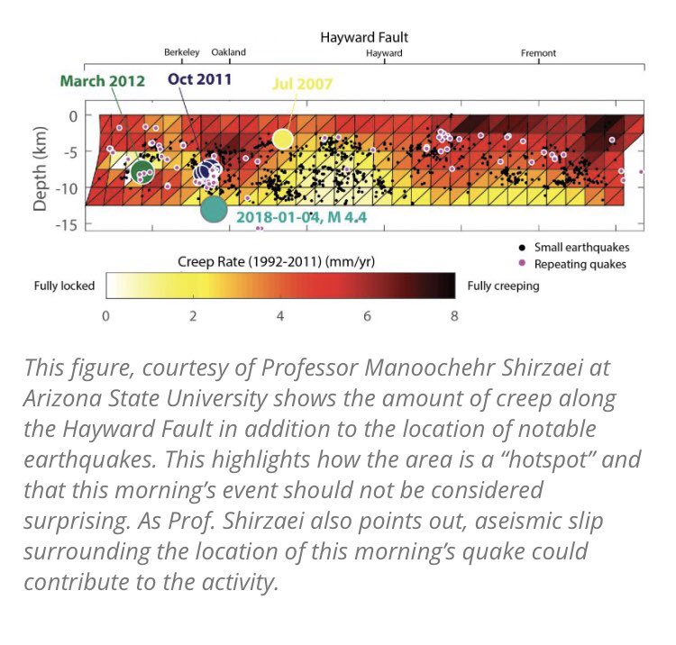 Last night’s quake was the largest one on the Hayward Fault since 1981. As you can see, we’ve been abnormally quiet for the last century. Accumulated slip deficits of more than a meter are largest south of Oakland w/ a patch around Fremont. http://temblor.net/earthquake-insights/largest-hayward-fault-earthquake-since-1981-raises-questions-about-what-could-happen-next-5999/ …pic.twitter.com/OtrH4bJEfP