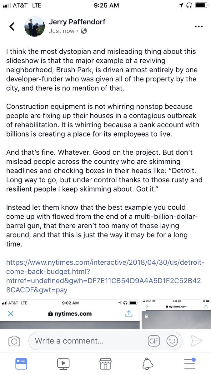 I think the most dystopian and misleading thing about this slideshow is that the major example of a reviving neighborhood, Brush Park, is driven almost entirely by one developer-funder who was given all of the property by the city, & there is no mention... https://www.nytimes.com/interactive/2018/04/30/us/detroit-come-back-budget.html?mtrref=undefined&gwh=DF7E11CB54D9A4A5D1F2C52B428CACDF&gwt=pay … pic.twitter.com/ES9dLJ1YGO
