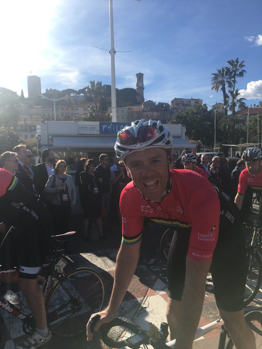@ClubPeloton ride to@MIPIMWorld what a massive achievement. Welcomed by the#Cannes sunshine and our very own Gerard Cook. All for a great cause too@Coram. Well done Simon!pic.twitter.com/3zqEwD2q9q