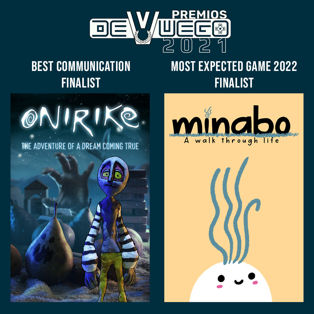 @DeVuego awards!#Minabo - A walk through life is a finalist for "Most Expected Game 2022"#Onirike is a finalist for "Best Communication". Thanks for the nominations and congratulations to the other finalists!#videojuegosEspañoles#indiedevpic.twitter.com/MqyBBbP8ch