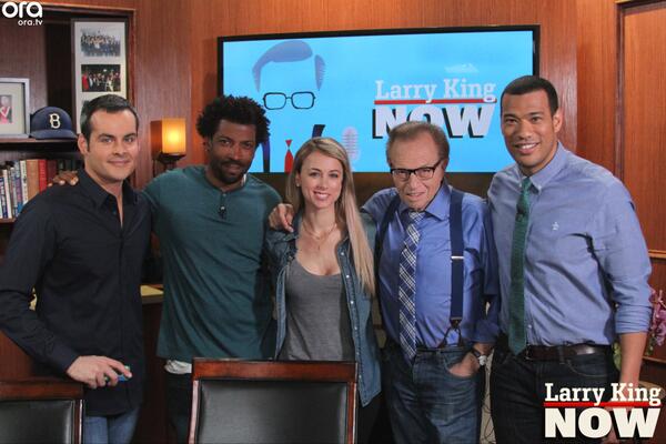 Talking #Kimye & trending topics w/@DavidBegnaud @iliza @michaelyo &@deoncole on #LarryKingNow http://on.ora.tv/14MO9Ij pic.twitter.com/50nYGNhicz