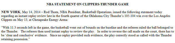 @kingsthings -> MT@ESPNNBA: NBA statement on 4th-quarter replay review call in Tuesday's Clippers-Thunder game.pic.twitter.com/niqmt5Cmck