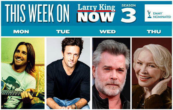 @kingsthings: .@JakeOwen,@jason_mraz,#RayLiotta &#EllenBurstyn join me for a great week on#LarryKingNow pic.twitter.com/rqVQvyJYCw”