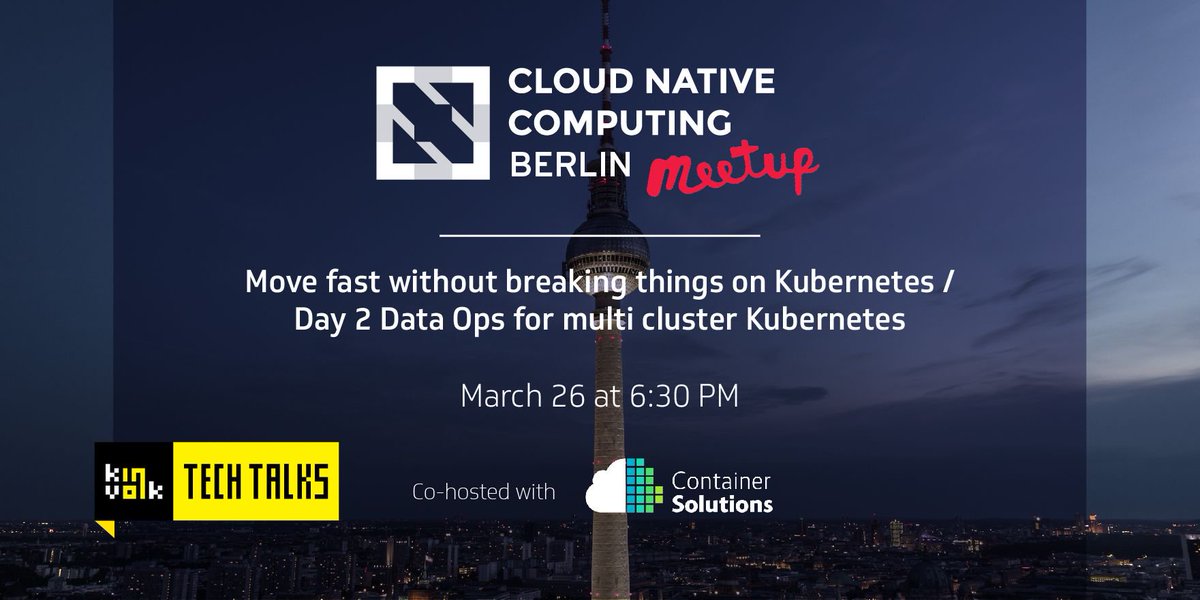 Join us next Tuesday, March 26th for another edition of the Berlin #CNCF Meetup, this time, co-hosted with our friends @containersoluti. Featuring talks from @pst418 & @grdnrio about all things #kubernetes. RSVP: http://j.mp/2UDzIow pic.twitter.com/VrRLM90tn4