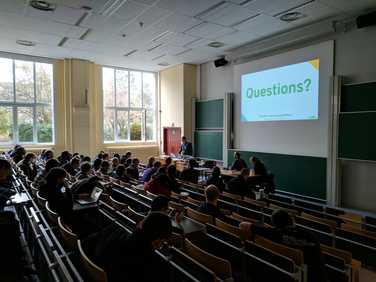 .@mrostecki delivered the last talk, "Running #VirtualMachines in containers", of the #Container & #microservices track @ #FOSDEM. Au-revoirpic.twitter.com/vmR3BgZ2PS