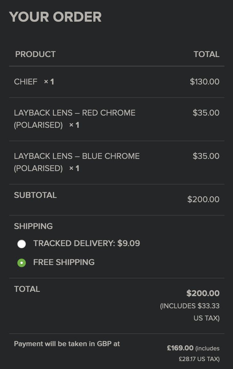Melon Optics: your total is 200 USD. Also Melon Optics: but you know what? we’ll charge you 169 GBP. haha! Wow, that’s like more than 10% more.