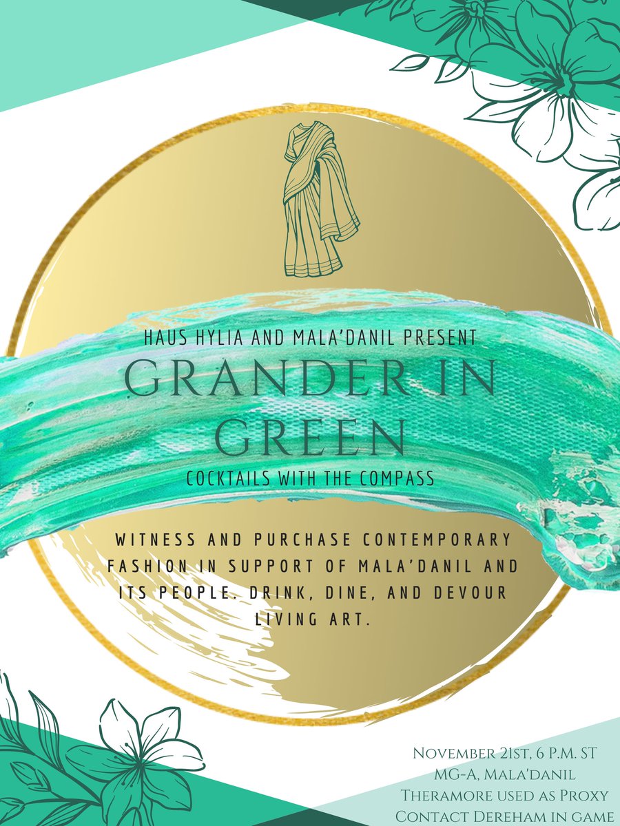 It's coming!! Cocktails with the Compass round 2 is upon us, and Hylia's fashion haus is hosting a show! If you have a character that would like to walk, bartend, or act as security let me know! Otherwise just attend for some fun.
