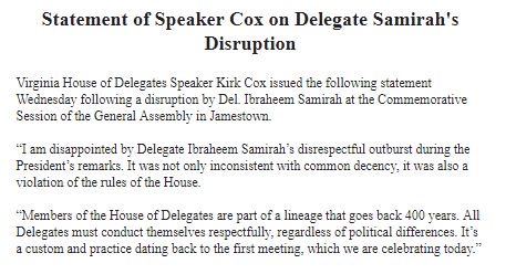 I think Delegate Samirah's action was incredibly noble. Grateful to him.