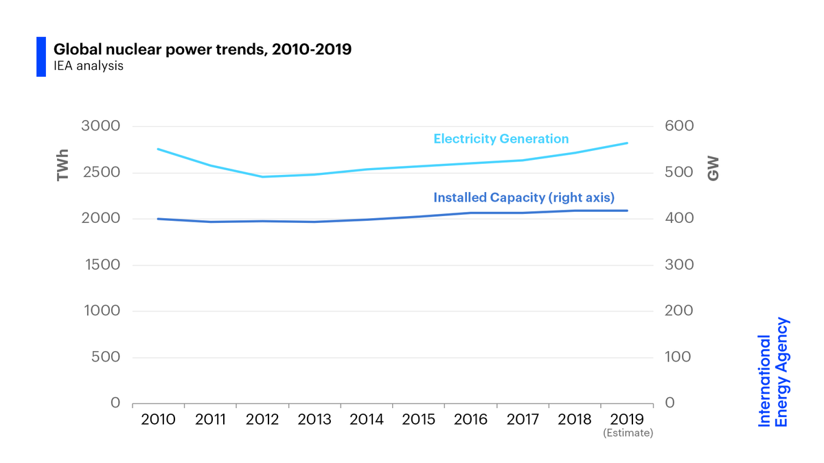 @IEA suggest global electricity generation from nuclear power hit its highest ever level in 2019, topping the earlier record from before the 2011 Fukushima nuclear accident in Japan. Big increases in China, Japan & Korea drove the 2019 growth: https://iea.li/2GBtbFs pic.twitter.com/niSzE5kt8T