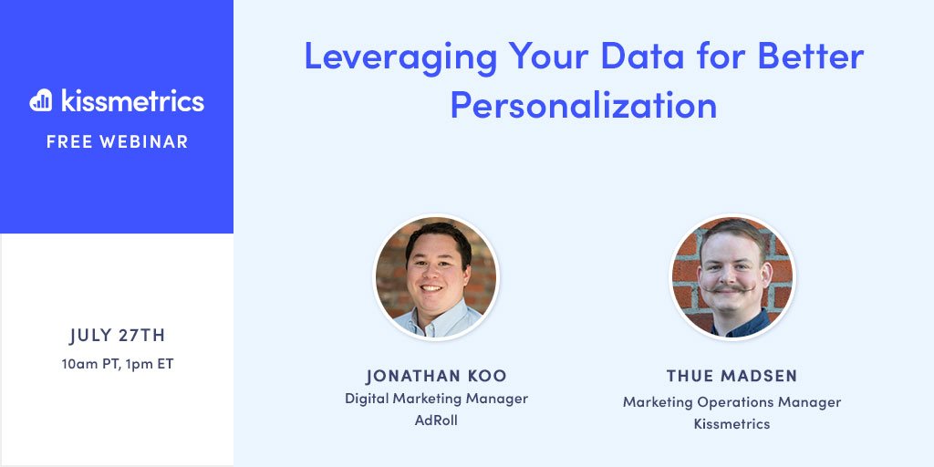 Join us next Thursday for a free webinar on leveraging your data for better personalization! Register now at http://grow.kissmetrics.com/webinar-206 pic.twitter.com/sMqCB5AQpO