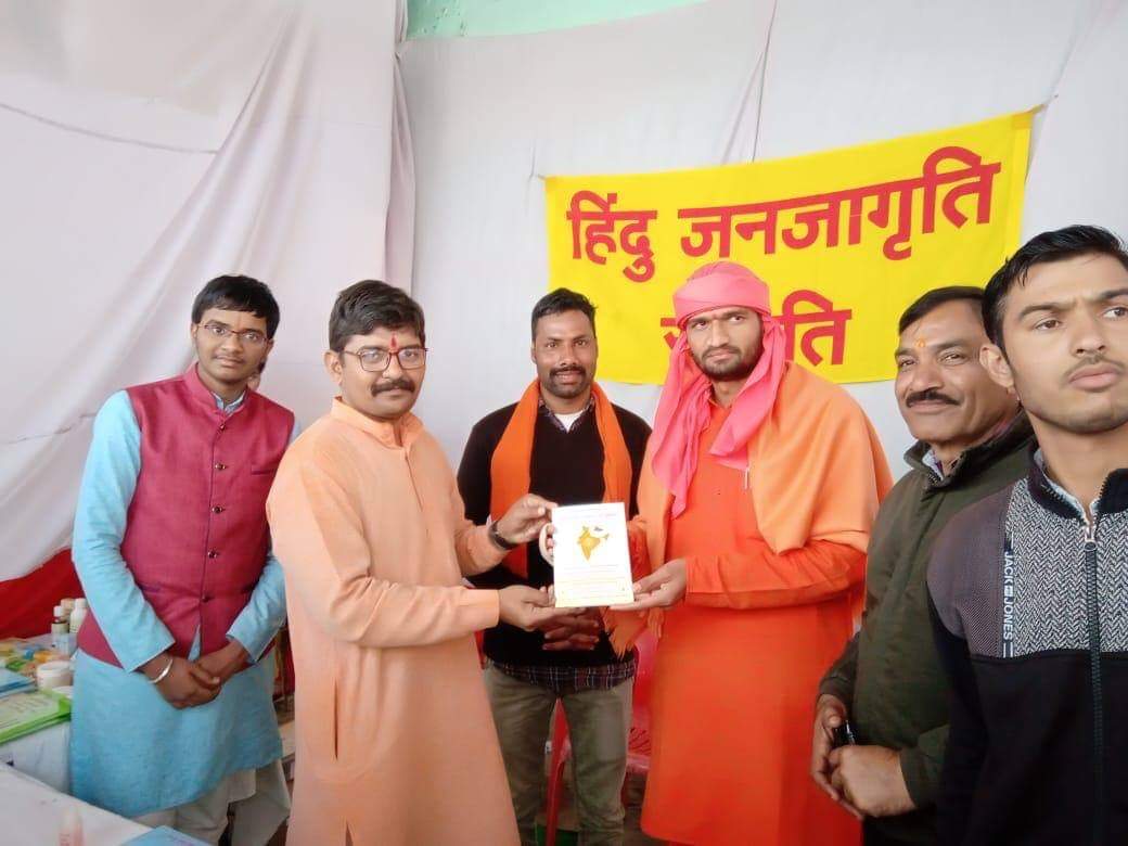 हिन्दु जनजागृती समिति व सनातन संस्था की ग्रंथ-प्रदर्शनी - हरियाणा के हांसी, हिसार में संघ शक्ति कार्यक्रम में समिति द्वारा ग्रंथ प्रदर्शनी का आयोजन किया किया गया । इस प्रदर्शनी में पूज्य संत शुक्राईनाथ योगी जी व महंत बाबा सागरनाथ जी ने भेंट दी।