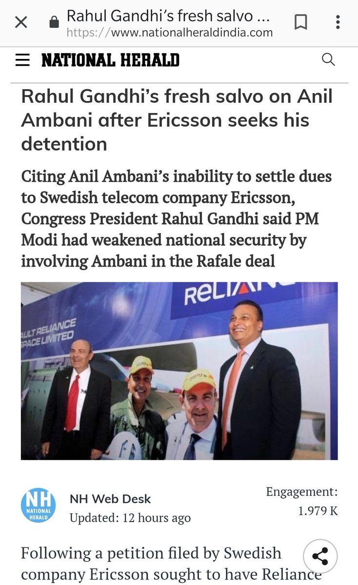 Ericsson requests Anil Ambani be detained in prison &barred from overseas travel unless he pays them Rs 550 crore owed to them. Dassault & Modi govt decided his company should be the Indian offset partner.Which MBA school teaches you this winning approach?https://economictimes.indiatimes.com/industry/telecom/telecom-news/ericsson-seeks-jail-for-rcom-chairman-anil-ambani-unless-dues-cleared/articleshow/67372397.cms …
