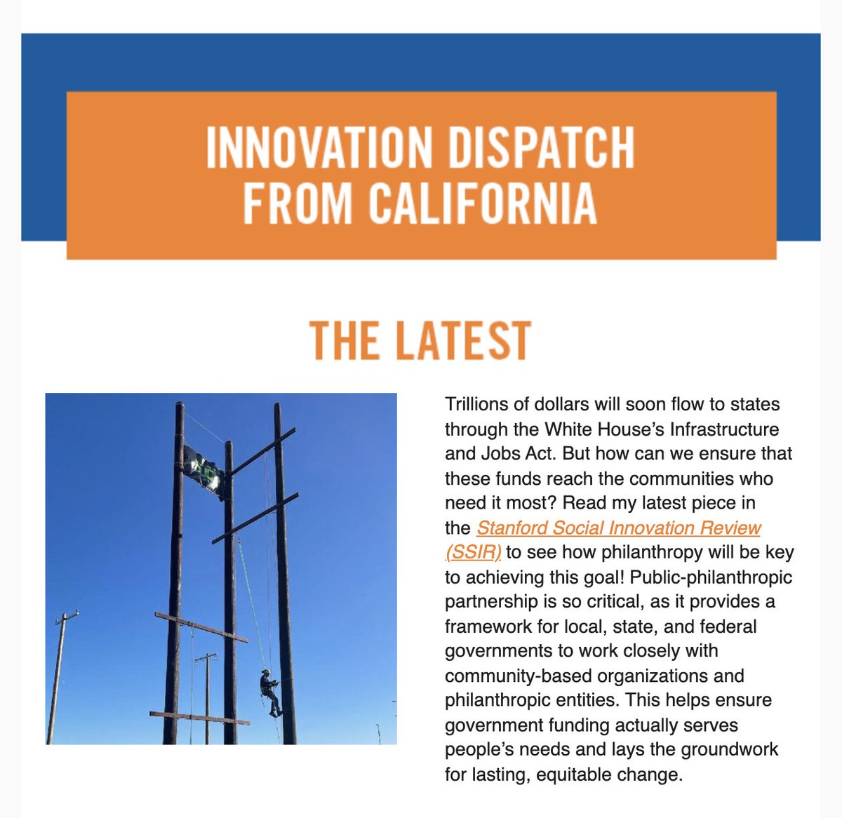 SO excited to share the 2021 Social Innovation Impact Report, from @CAgovernor's Office! Read about the power of partnership: http://bit.ly/CAsocialimpact2021 …#MissionMonday#CAInnovators#CaliforniaForAll [1/2]pic.twitter.com/Ytvcd4kSVwShow this threadThanks. Twitter will use this info to make your timeline better. UndoUndo -