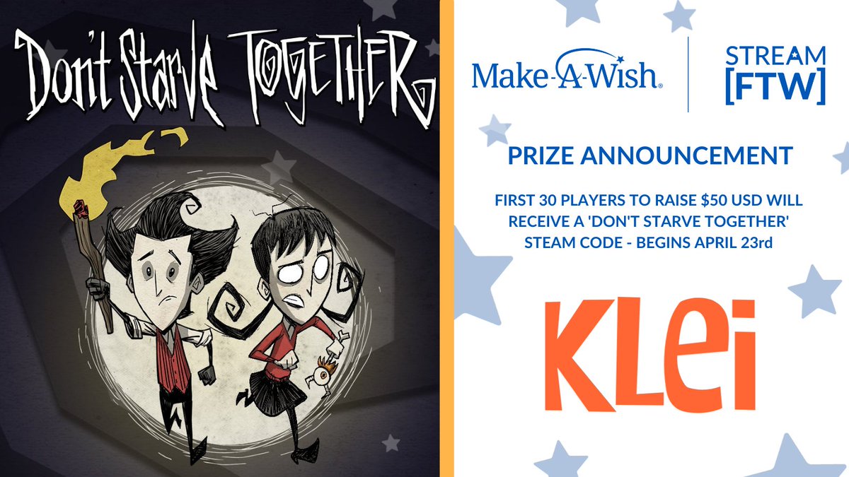 #contentcreator who raise $50 USD during Stream For the Wishes - starting 4/23 - receive a@Steam code for 'DON'T STARVE TOGETHER'! Courtesy of our friends at@klei this is a great way to kickoff the fundraising. Go to http://wish.org/worldwish22 to stream & grant wishes!pic.twitter.com/NrZYNE0CJp