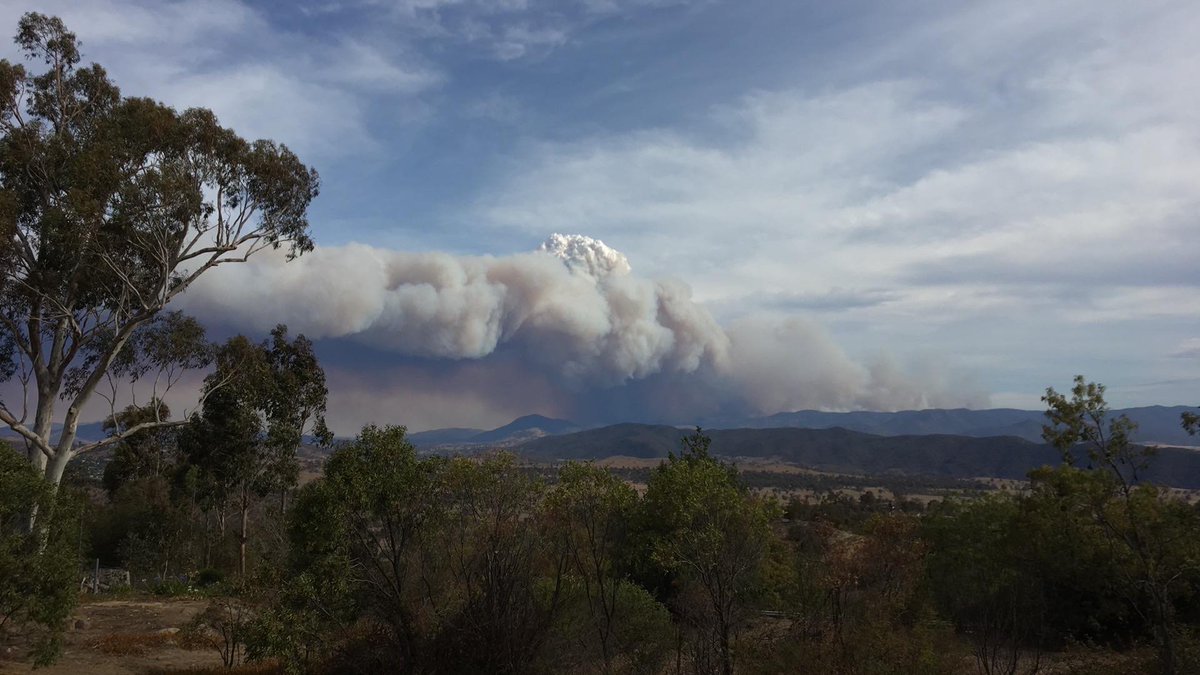Namadgi fire moving towards Canberra as seen from Arboretum.