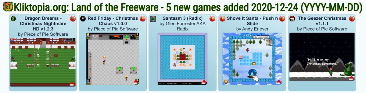 Just added some more festive freeware Click games to the Kliktopia archive thanks to contributions from Yxkalle, Chris Street and Piece of Pie Software. Check out all the Christmas and winter themed games at https://kliktopia.org/christmas.html and let us know your favourites!pic.twitter.com/jBQqeVQPZ6