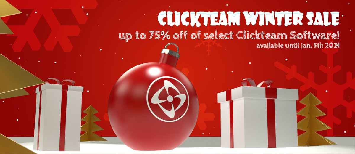 Christmas may be over, but there is still around 28 hours left on Clickteam's winter sale. Interested in buying Clickteam Fusion 2.5 and some games made using this game creation tool? No time like the present!https://twitter.com/Clickteam/status/1341801274023546880 …