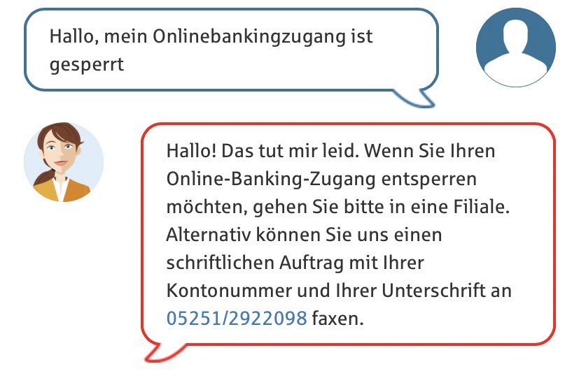 Die Sparkasse ist doch schon extrem weit. https://twitter.com/der_simon/status/1214258424776671233?s=21 … Per Livechat konnte man mir sagen, dass ich ein Fax schicken soll. Daraufhin musste ich nochmal telefonieren und dann ging mein Onlinebanking schon wieder. Alles voll digital.https://twitter.com/der_simon/status/1214258424776671233 …