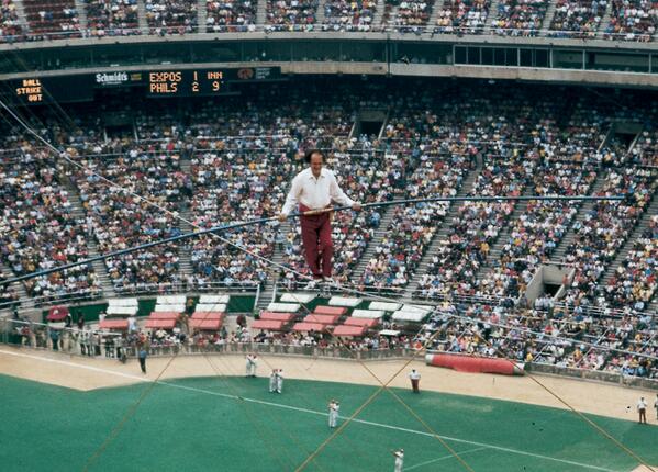 Before my time in Philly but ... wow. MT @Phillies: Karl Wallenda walks across Veterans Stadium (1972).pic.twitter.com/9rrrIDXzqY