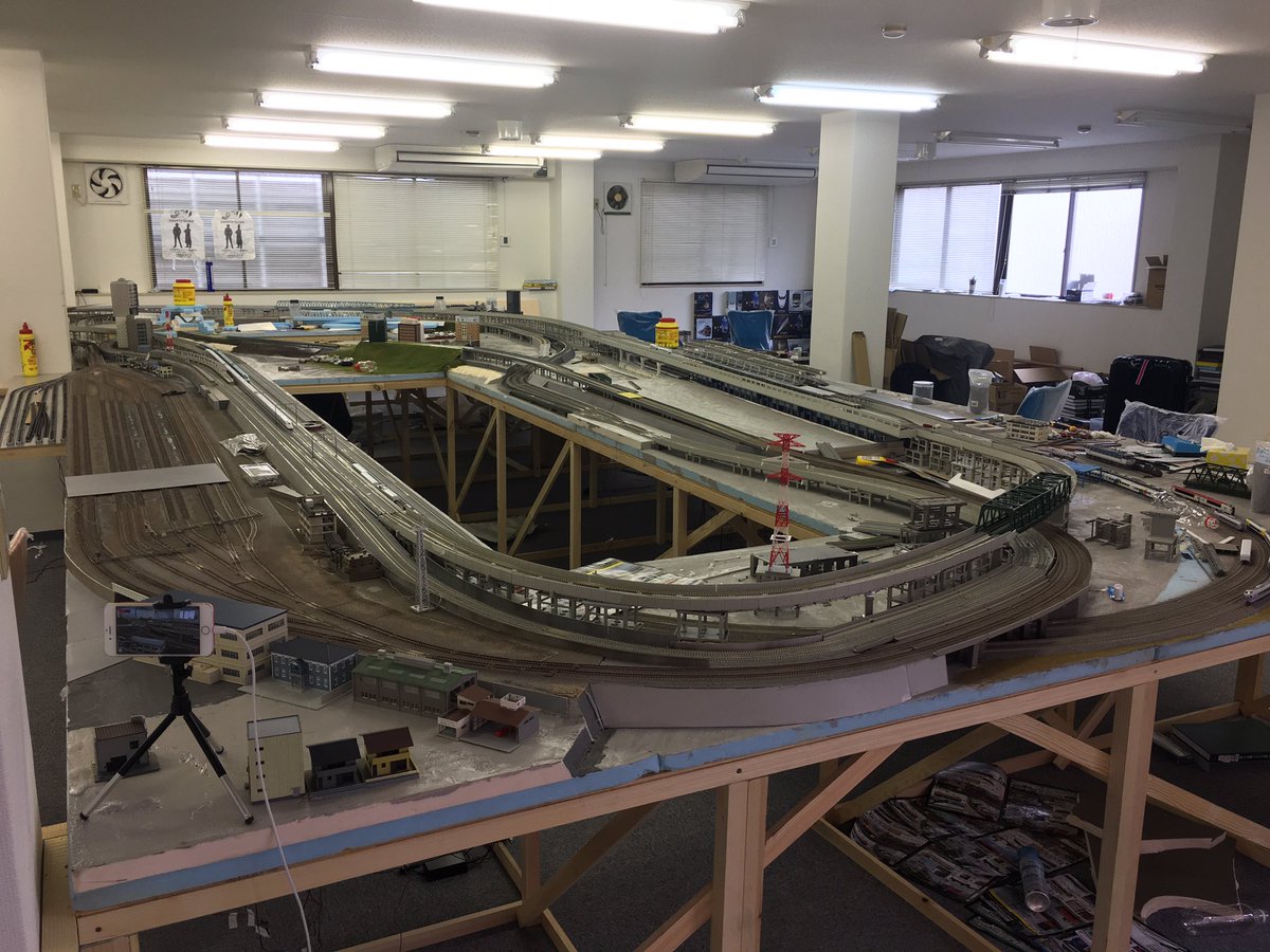 防音壁もそれらしく再現、高架の底のビーム部分は5mm幅の0.3mmプラ板を貼り、塗装でごまかしています(^_^)